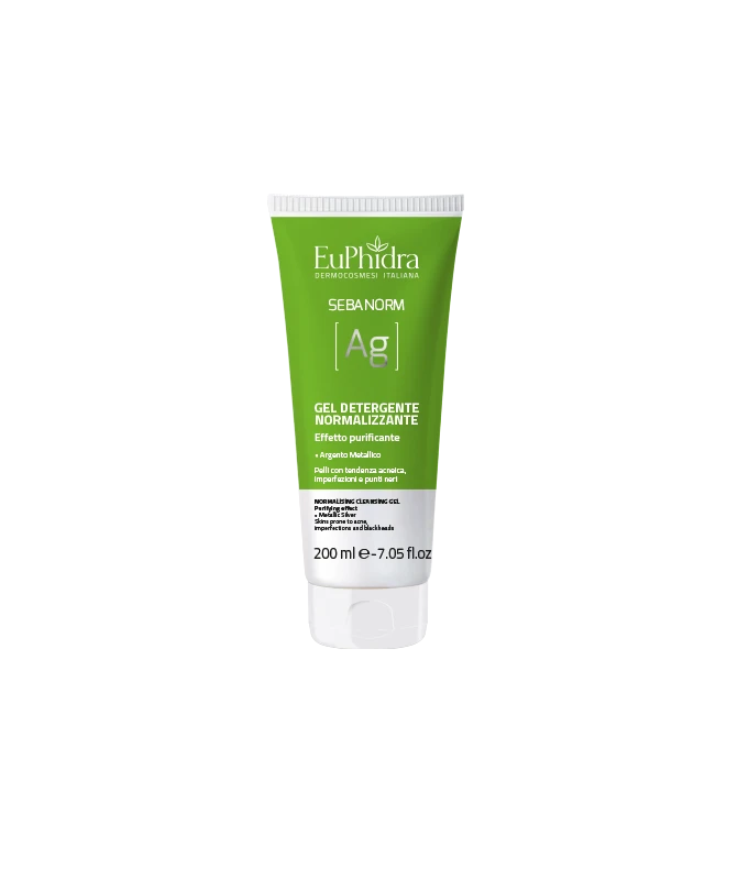La pulizia della pelle impura è un gesto fondamentale della beauty routine quotidiana per ritrovare una pelle liscia e sana. EuPhidra Sebanorm Ag Gel Detergente Normalizzante pulisce in profondità la pelle favorendo l’eliminazione del sebo in eccesso e delle impurità. Un complesso di tensioattivi bilanciati assicura una detersione delicata, evitando l’effetto rebound della pelle che se troppo “sgrassata” risponde sovrapproducendo sebo. L’argento metallico attiva la formula grazie alla sua proprietà purificante che favorisce l’eliminazione delle impurità e ne ostacola la ricomparsa.
