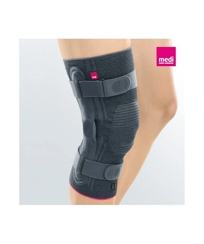 Caratteristiche: struttura soft tubolare in materiale elastico latex-free altamente traspirante con fibre d’eucalipto, in tessuto Medi® con sistema Climafresh e Climacomfort, senza cuciture, dotata di silicone antiscivolo interno, con foro rotuleo coperto. Snodo policentrico libero in tecnopolimero Easyglide. Stabilizzatore rotuleo in silicone ad anello con profilo 3D per massaggio, removibile. Chiusura mediante fasce strappo regolabili.