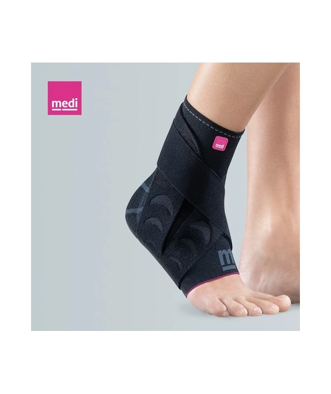 Caratteristiche: struttura in materiale elastico con compressione propriocettiva altamente traspirante e termoregolatore, tessuto Medi® con sistema Climafresh e Climacomfort, conformazione anatomica senza cuciture, dotata di sistema di fasce a strappo per garantire la stabilità all’articolazione e controllare la supinazione. Cuscinetti in silicone retromalleolari integrati.