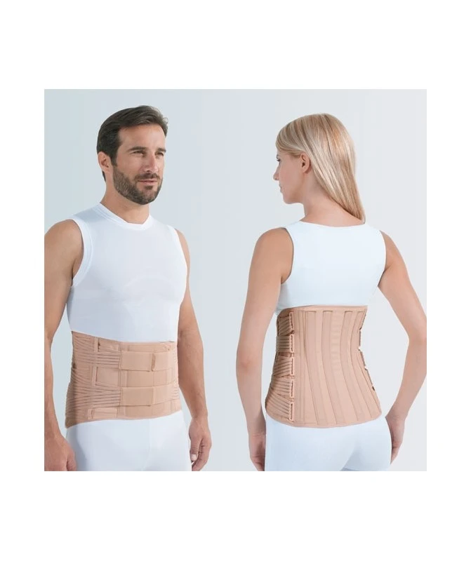 Caratteristiche: LomboFIXÒ 33 – 4.0 grazie alle fibbie cucite autonomamente al tessuto, permette ai tiranti di esercitare una forza mirata sull’anatomia della persona. Le 4 stecche posteriori offrono un efficace sostegno al busto. Il tessuto morbido e traspirante, e la conformazione superiore del corsetto che non ostacola l’espansione della cassa toracica, donano comfort alla parte. LomboFIXÒ 33 – 4.0 è un supporto discreto sotto gli abiti, grazie alla patella morbida e resistente nel tempo, studiata per evitare gli arricciamenti.