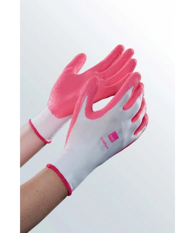 I guanti medi sono stati progettati tenendo conto delle calze a compressione e dei manichini. L’innovativo materiale consente una migliore aderenza al tessuto per favorire l’indossamento e la levigatura del materiale di compressione in modo che sia distribuito e posizionato correttamente sull’arto.