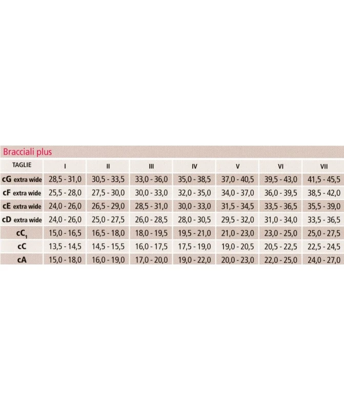 | Taglie | Circonferenza punto g (normale) | Circonferenza punto g (Plus) | Circonferenza punto c |