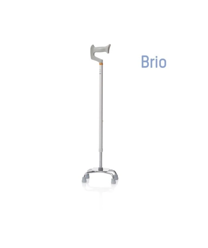 Quadripode base stretta con fusto in alluminio anodizzato e base in acciaio cromato. Manico anatomico aperto, puntali antiscivolo in gomma morbida.