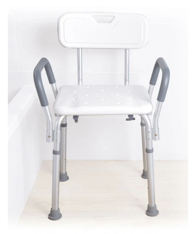 Sedia per doccia con schienale e braccioli regolabile in altezza