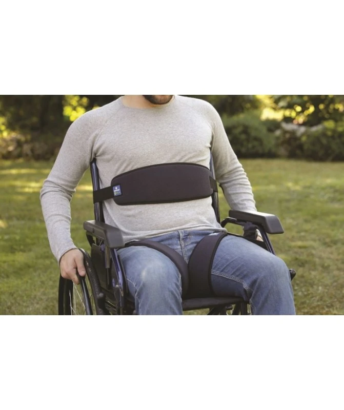 Indicata per evitare lo scivolamento in avanti e per favorire il contenimento di pazienti seduti su carrozzina o sedia comoda. La fascia è particolarmente confortevole grazie al tessuto imbottito col quale è stata realizzata. Dotata di nastro regolabile in lunghezza e chiusure a clip che consentono un rapido e corretto posizionamento per qualsiasi corporatura su tutti i modelli di carrozzine, sedie comode o seggioloni, nonché un rapido sgancio in caso di emergenza.