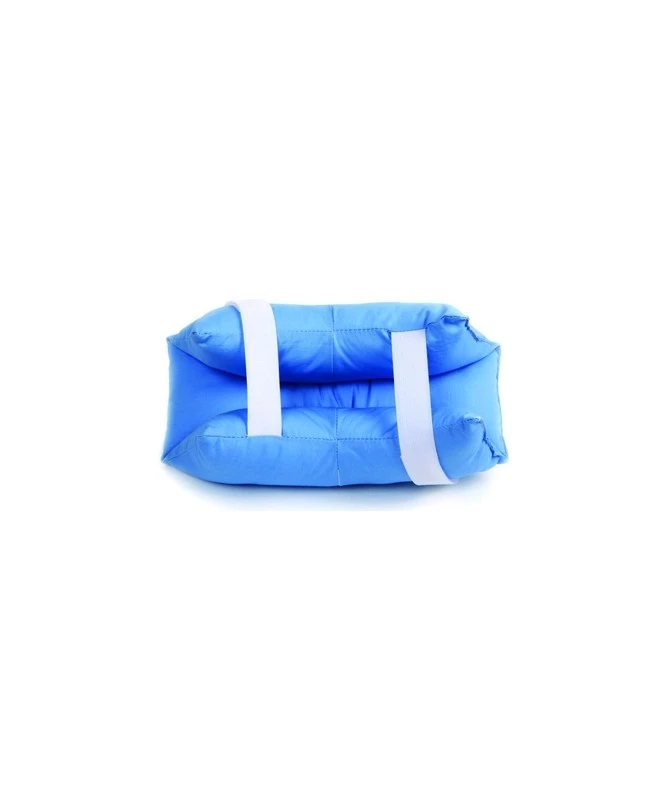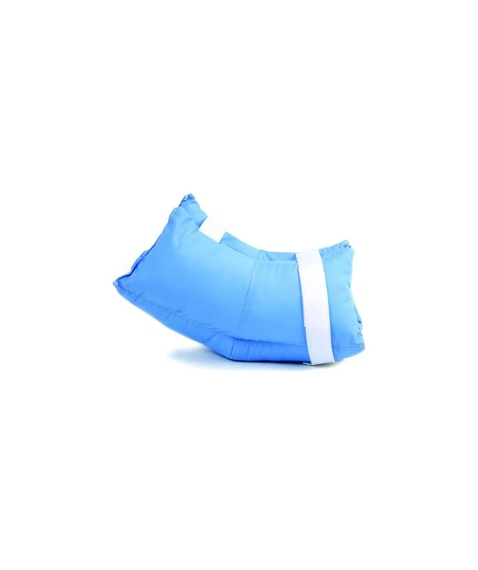 Protezione per la prevenzione del decubito del tallone realizzata con fibra cava siliconata all’interno di una fodera in tessuto di cotone 100% sanforizzato con sistema di chiusura intorno al tallone mediante velcri. La forma è studiata in modo da ridurre la pressione ossea del tallone contro i tessuti, assicurando in tal modo la protezione del tallone e della caviglia. L’elevata resilienza della fibra cava e la traspirabilità consentono un’azione di prevenzione dell’insorgenza delle lesioni da decubito.