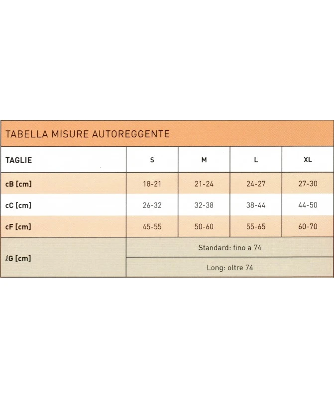 Per scegliere tra la versione Standard o Long misurare dal tallone alla fine della coscia (lunghezza G nelle immagini).