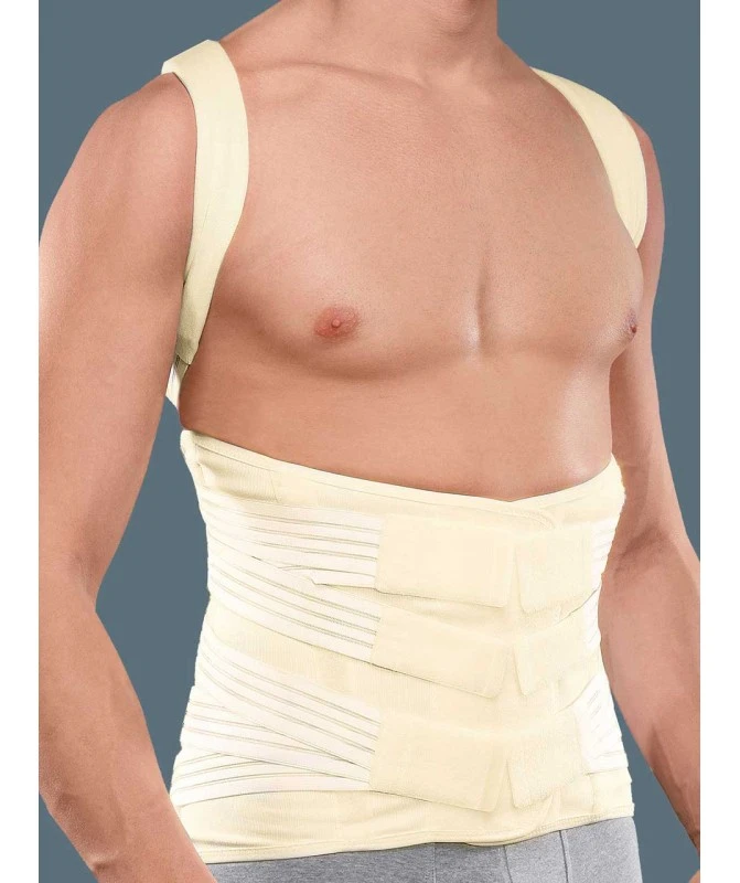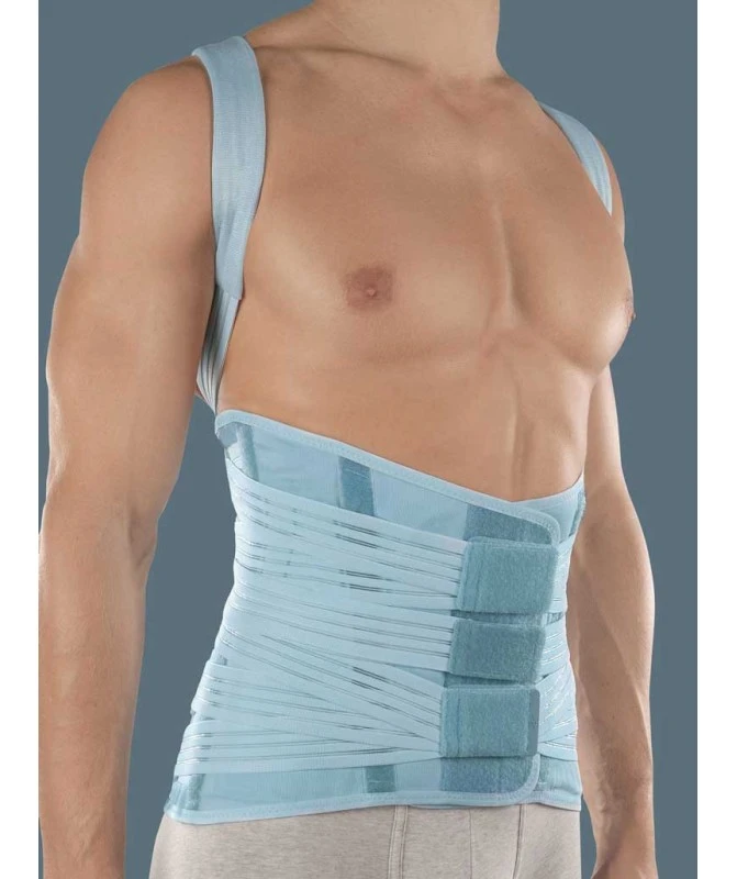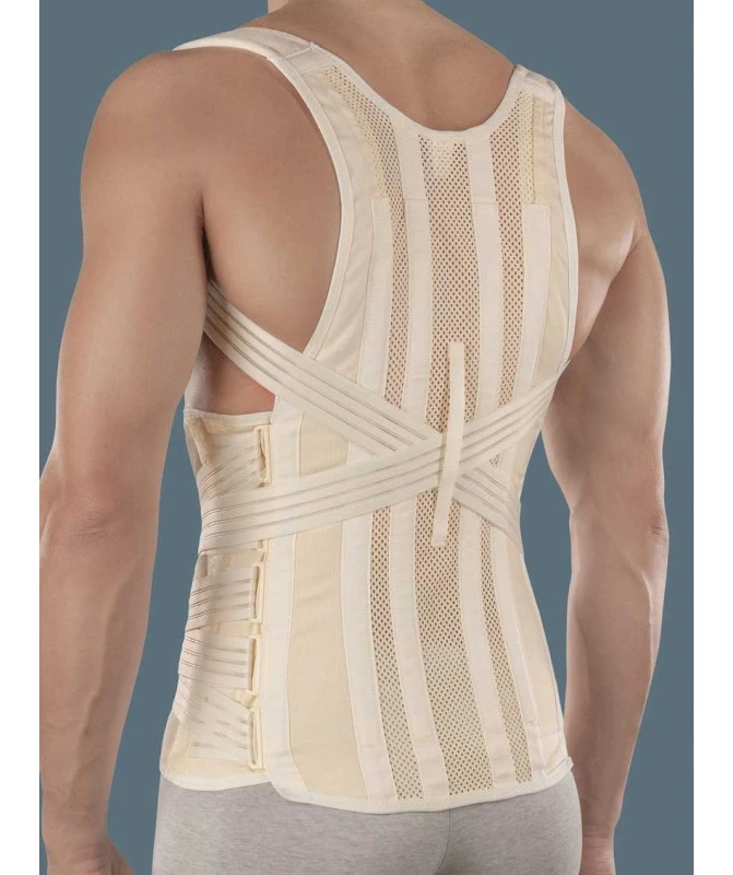 Caratteristiche: Sistema di trazione a tiranti elastici per una pressione mirata e una perfetta stabilizzazione del tratto dorso-lombare. Chiusura anteriore in velcro. Spalline con ascellari imbottiti. Zona paravertebrale con 4 guide per l’inserimento di max 4 stecche rigide.