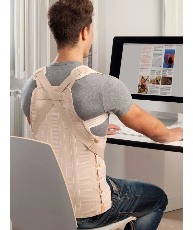 Busto spallaccio dorso lombare semirigido a trazione antero-posteriore