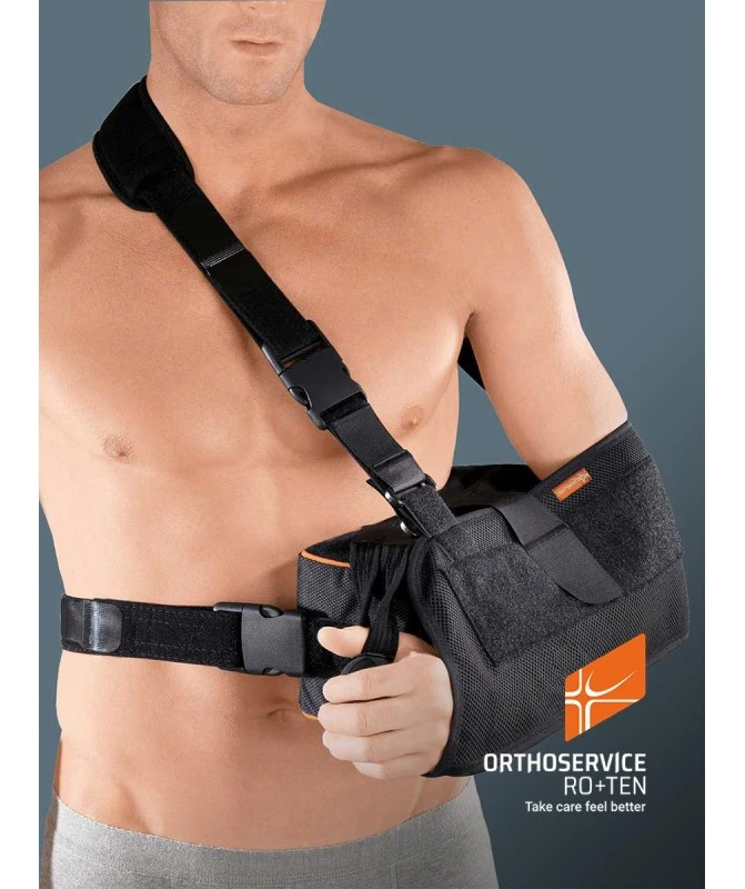 Caratteristiche: Struttura in gommapiuma ad alta densità ricoperta da tessuto tramato in fibra d’argento. Cuscino con sponda anteroposteriore per una ottimale stabilità. Rivestimento del cuscino in materiale garzato, per una migliore adesione dei velcri. Tasca reggibraccio in materiale traspirante. Ambidestro. Tiranti con fissaggio a fibbie e regolabili a velcro. Pallina riabilitativa. Cinturino di sostegno del pollice. Abduzione a 10°.