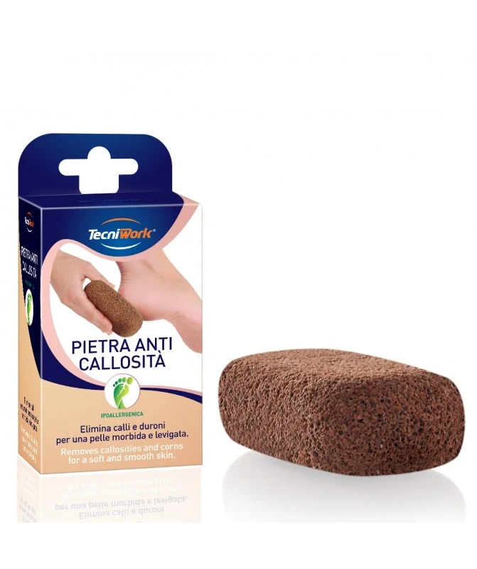 Pietra abrasiva che elimina ispessimenti e callosità, per piedi lisci, morbidi e vellutati.